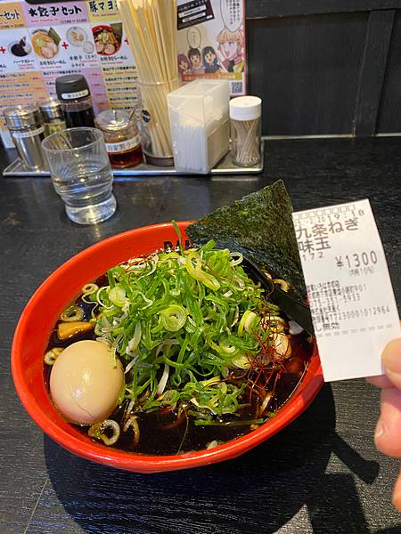 我吃的是得獎名作,有蛋和更多蔥花,1300丹(282台幣)。我看到像小山一樣的蔥花真是滿心歡喜,我喜歡蔥的味道。